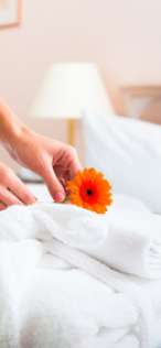 The hotel decreed over 15 rooms, which are fully renovated in 2005 and redecorated in the last years. Two floors, in each case with 5 rooms, are non smoking-area. The rooms are equipped with Shower/WC, Flat-TV, radio-alarm-clock and directphone. Naturally hairdryer is diposal in each room. For allergy suffer we have special pillows. An elevator takes you up to one of our three floors.